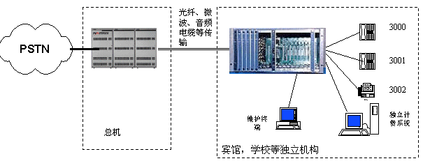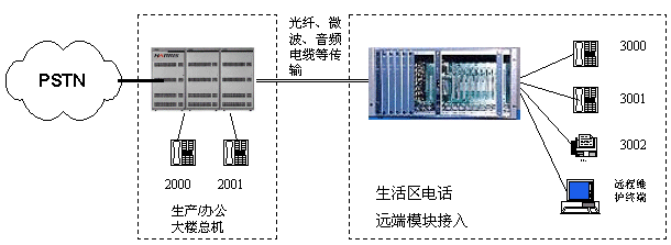 體系特點(diǎn):新增的住宅小區(qū)和分支機(jī)構(gòu)電話系統(tǒng)不需增加一臺(tái)交換機(jī)或者對(duì)交換機(jī)進(jìn)行大的改造,只需在該小區(qū)和分支機(jī)構(gòu)增加DAS128的遠(yuǎn)端模塊。該電話系統(tǒng)功能與本機(jī)完全一致并可由交換機(jī)統(tǒng)一管理。節(jié)約投資費(fèi)用、并進(jìn)一步減少維護(hù)人力資源和管理費(fèi)用。遠(yuǎn)端模塊與交換機(jī)之間使用光纜連接,也免除了維護(hù)、檢查大捆通信電纜線的煩惱。所有分支機(jī)構(gòu)都可共享總機(jī)全部資源。