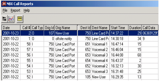 3Com公司的NBX系列網(wǎng)絡(luò)電話交換機具有強大的記錄、統(tǒng)計、輸出功能(CDR)。可以對通過交換機平臺呼入呼出的電話、語音信箱留言、自動電腦話務(wù)員的訪問信息都記錄在案。只要通過NBX交換機所在局域網(wǎng)內(nèi)的任意一臺PC安裝查詢軟件,通過密碼認(rèn)證,就可以從NBX交換機下載電話記錄數(shù)據(jù)。