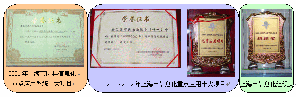 去年,徐匯區(qū)政府憑借其"市民咨詢服務(wù)(呼叫)中心",脫穎而出,一舉獲得"2001年上海市區(qū)縣信息化重點(diǎn)應(yīng)用系統(tǒng)十大項(xiàng)目"大獎(jiǎng);今年,在新近上海市政府進(jìn)行的信息化評比中,徐匯區(qū)政府又榮獲兩項(xiàng)大獎(jiǎng),分別是"上海市信息化組織"和"2000~2002年上海市信息化重點(diǎn)應(yīng)用十大項(xiàng)目"。上海市市委書記陳良宇親自頒發(fā)獎(jiǎng)項(xiàng)。