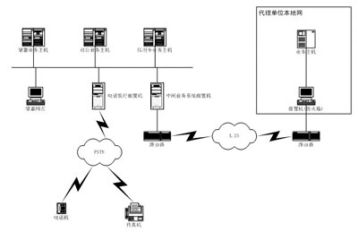 根據(jù)業(yè)務(wù)需求,電話銀行前置機(jī)以 PC服務(wù)器(聯(lián)想萬(wàn)全服務(wù)器)為硬件平臺(tái),通過(guò)PSTN網(wǎng)接電話機(jī)、傳真機(jī)以及其他查詢(xún)終端,另一端接電話銀行前置機(jī)中的語(yǔ)音卡。