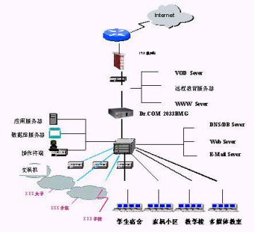 BRAS的驗(yàn)證才能上網(wǎng)。校園網(wǎng)系統(tǒng)應(yīng)能覆蓋整個(gè)校園,并連接所有的學(xué)院和辦公區(qū),為大學(xué)開展現(xiàn)代化的經(jīng)營(yíng)管理和辦公教學(xué)提供一個(gè)具有開放式體系結(jié)構(gòu)的計(jì)算機(jī)網(wǎng)絡(luò)系統(tǒng),具有高度的可靠性和可擴(kuò)展能力。對(duì)校園網(wǎng)內(nèi)的每一用戶(老師或?qū)W生)、閱覽室、圖書館、多媒體教室等都能夠進(jìn)行單獨(dú)的管理、計(jì)費(fèi)(時(shí)長(zhǎng)、時(shí)段、包月、流量)、驗(yàn)證、授權(quán)(瀏覽、下載、收發(fā)信件、網(wǎng)站屏蔽)、共享、帶寬分配。尤其對(duì)學(xué)生和老師區(qū)別的管理非常獨(dú)特。