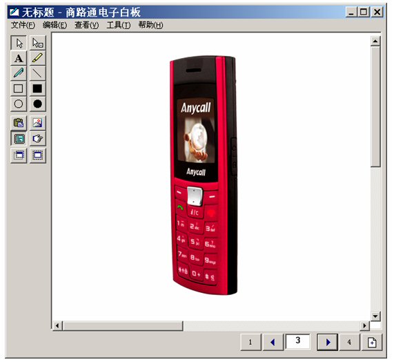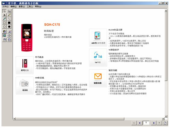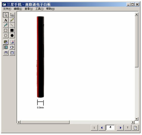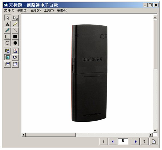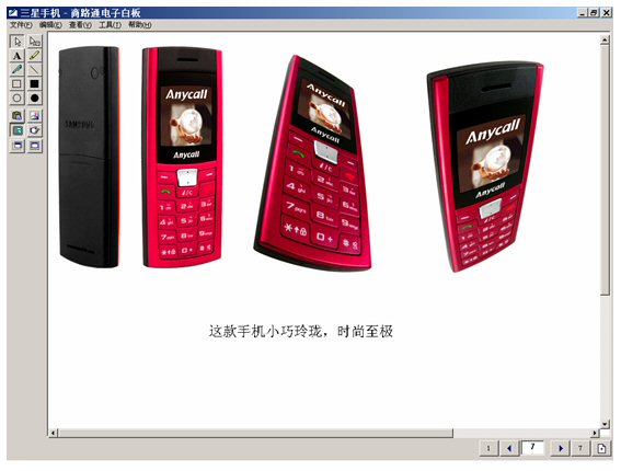 坐席進(jìn)入富媒體知識(shí)庫(kù),調(diào)出三星手機(jī),啟動(dòng)電子白板,將這個(gè)畫面推送給客戶。