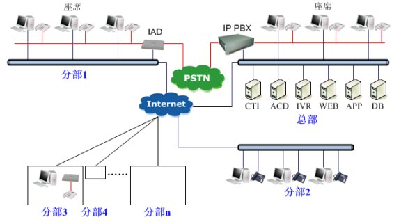 PBX的,二者都可以滿足需要,而且價(jià)格不高。但是由于企業(yè)的銷售和售后服務(wù)分布在7個(gè)地方,如果把座席一部分座席也安裝到辦事處,可以帶來非常多的好處: