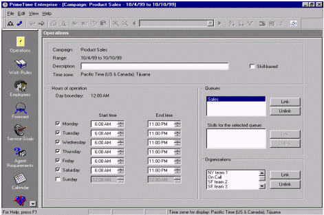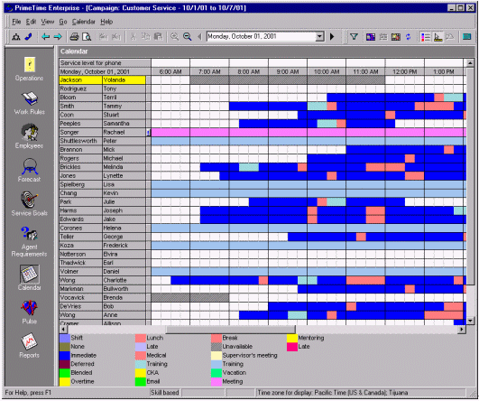 絕大多數(shù)的WFMS可以通過歷史數(shù)據(jù)和人員情況自動(dòng)生成排班表。而且它也只是簡(jiǎn)單的根據(jù)呼叫中心的運(yùn)營時(shí)間來排班。舉個(gè)例子,某個(gè)呼叫中心在排班是有兩個(gè)班,一個(gè)工作時(shí)間是早7點(diǎn)到下午3點(diǎn),另一個(gè)是早九點(diǎn)到晚五點(diǎn),這就意味著不僅要安排早、晚休息,還要顧及到午休的時(shí)間。休息的安排要保證能夠在電話的持續(xù)中也能有持續(xù)的人員保證電話量。在這個(gè)自動(dòng)化軟件的之中還有一個(gè)因素要能夠?qū)崿F(xiàn)自動(dòng)化--人的因素。例如:Mary和Jane想同時(shí)去吃午餐,然而自動(dòng)化的排班表并不是這樣的。然而主管根據(jù)當(dāng)時(shí)的話務(wù)量情況和工作狀況以及工作規(guī)范批準(zhǔn)了Mary和Jane共享午餐的要求,而WFMS就要能夠處理這樣很有可能發(fā)生,而且是合理的情況。排班表的更改應(yīng)該就是簡(jiǎn)單的拖拽圖標(biāo)就應(yīng)該能夠?qū)崿F(xiàn)的功能,并且能夠在這種更改會(huì)對(duì)預(yù)測(cè)的話務(wù)量差生不好影響時(shí),拒絕這種拖拽行為。