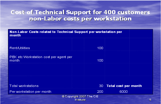 最后,我們可以如同下面圖表10所示,把所有的信息放在一起。每個客戶的技術(shù)支持的實際成本包括間接人工成本和工作場地成本,這是服務(wù)一個客戶所花費成本的正確的反映。
