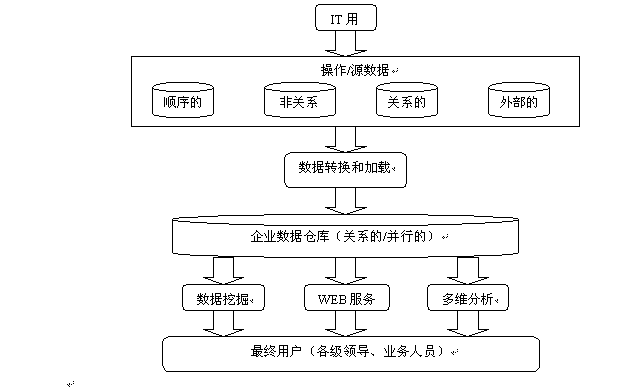 數(shù)據(jù)倉(cāng)庫(kù)是信息技術(shù)領(lǐng)域的新概念,是近幾年來(lái)迅速發(fā)展起來(lái)的一種信息存儲(chǔ)及管理技術(shù)。它存儲(chǔ)各種大量的、決策分析所需要的、歷史的、分散的數(shù)據(jù),經(jīng)過(guò)處理將這些數(shù)據(jù)轉(zhuǎn)換成集中統(tǒng)一、隨時(shí)可用的信息。它能方便地提供隨機(jī)查詢和各種分析處理,它具有在任何時(shí)間、就任何業(yè)務(wù)、回答任何問(wèn)題的能力;利用數(shù)據(jù)倉(cāng)庫(kù)前端的數(shù)據(jù)挖掘工具和人工智能算法建立各種調(diào)查、分析和預(yù)測(cè)模型。