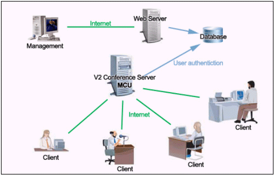 V2 Conference可以利用普通的PC機、標準的視頻攝像頭、耳機和麥克風(fēng),通過Internet或者是局域網(wǎng)進行會議。與傳統(tǒng)的需要專用的服務(wù)器和硬件支持的視頻會議相比,企業(yè)無需投入高昂的成本,就可以實現(xiàn)高質(zhì)量的遠程會議。同時,V2 Conference還提供了遠程會議管理的功能。