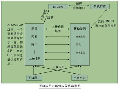 自推出2.5G、3G網(wǎng)絡(luò)以來,中移動、聯(lián)通開始對手機應(yīng)用市場傾注了更多的關(guān)注。中移動首先推出了移動夢網(wǎng),為第三方軟件開發(fā)商提供了與手機用戶直接接觸的平臺。而第三方軟件的出現(xiàn),預示著手機應(yīng)用市場銷售模式全面的改觀,除了必要的應(yīng)用,如電話簿、短信平臺,大部分應(yīng)用都可以不再預裝到手機中,而是由消費者自主選擇,通過網(wǎng)絡(luò)下載獲得。