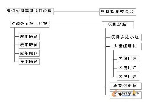 整個(gè)組織結(jié)構(gòu)分三層,咨詢公司可以在每一層都安排相應(yīng)人員予以支持。最高層為項(xiàng)目指導(dǎo)委員會(huì),具有高度決策權(quán)。一般由總經(jīng)理主持,企業(yè)有關(guān)高層經(jīng)理和項(xiàng)目總監(jiān)作為成員。