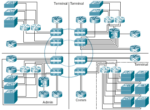 下面的結(jié)構(gòu)圖顯示了該機場所部署的基礎(chǔ)設(shè)施的拓撲結(jié)構(gòu)。