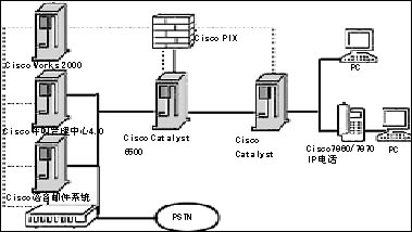 如果實(shí)現(xiàn)VoIP,安全是個(gè)需要考慮的重要事項(xiàng),因?yàn)閂oIP中的每一節(jié)點(diǎn)都像計(jì)算機(jī)一樣是可訪問(wèn)的。Cisco VoIP系統(tǒng)拓?fù)鋱D