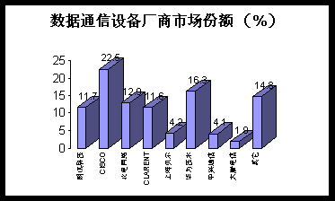 (3)市場發(fā)展及預(yù)測: 2001年數(shù)據(jù)通信設(shè)備市場仍會保持高速增長,在網(wǎng)絡(luò)交換平臺、接入服務(wù)器、路由器等高端產(chǎn)品領(lǐng)域,非外資通信設(shè)備廠商有望繼續(xù)擴大領(lǐng)地,外資廠商如CISICO、IBM、HP等預(yù)計會下延其產(chǎn)品線不斷向中低端產(chǎn)品滲透。市場競爭的加劇可能促使更多的企業(yè)進(jìn)行戰(zhàn)略性合作。網(wǎng)絡(luò)運營業(yè)務(wù)準(zhǔn)入門檻的降低將再度加劇運營商間的競爭,由此會進(jìn)一步拉動數(shù)據(jù)通信設(shè)備市場的需求、促成設(shè)備廠商與運營商在多層面上合作。