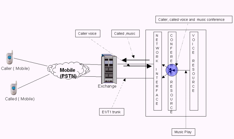 8、電話接通后,SCP發(fā)送命令到IP,在會議中加入主叫和被叫方播放背景音樂。