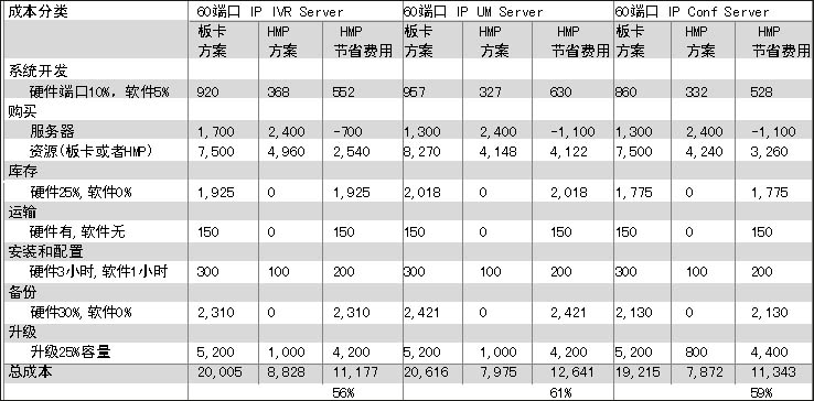 還好,所幸的是HMP還沒有一口吃光媒體處理市場,就連Intel自己也說,HMP最適合純IP環(huán)境和低密度市場。當(dāng)然這并不意味著它不適合電信級市場,它可以通過擴(kuò)展到多個(gè)服務(wù)器來實(shí)現(xiàn)密度的提升,它也已經(jīng)在南方的某家運(yùn)營商開通試驗(yàn)局,它也可以在通信廠商的設(shè)備中插刀片式服務(wù)器,在單結(jié)點(diǎn)實(shí)現(xiàn)高密度。但企業(yè)應(yīng)用無疑是HMP要緊盯的市場。Intel認(rèn)為,中小企業(yè)非常多,企業(yè)應(yīng)用市場還有非常廣闊的空間,采用HMP,可以幫助這些企業(yè)用低成本實(shí)現(xiàn)許多應(yīng)用,包括語音信箱等。
