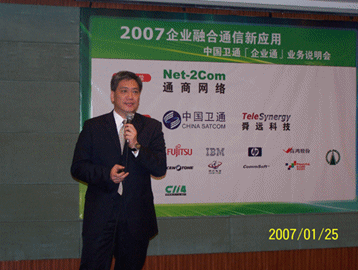 。。2007年1月25日,由上海通商網(wǎng)絡軟件開發(fā)有限公司主辦,中國衛(wèi)星通信集團上海分公司,舜遠科技(上海)有限公司協(xié)辦的“2007企業(yè)融合通信應用暨中國衛(wèi)通‘企業(yè)通’業(yè)務說明會”順利在上海成功舉辦。