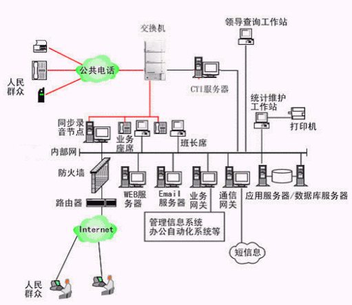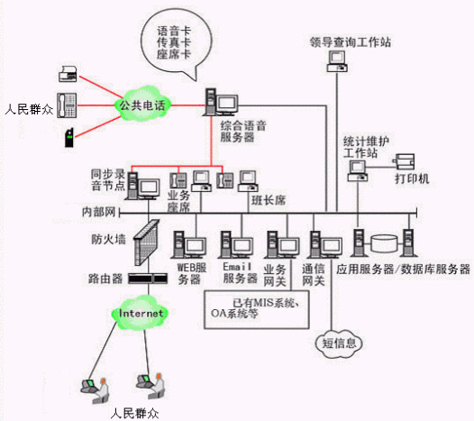 服務(wù)器啟動(dòng)坐席去觸發(fā)其業(yè)務(wù)功能模塊;通過(guò)WEB技術(shù)和WEB服務(wù)器的數(shù)據(jù)庫(kù)連接技術(shù)的集成,坐席可通過(guò)WWW服務(wù)器和數(shù)據(jù)庫(kù)服務(wù)器與整個(gè)系統(tǒng)的業(yè)務(wù)數(shù)據(jù)系統(tǒng)進(jìn)行有機(jī)結(jié)合,坐席就可訪(fǎng)問(wèn)系統(tǒng)中的業(yè)務(wù)信息,為人民群眾提供政策解答、信息咨詢(xún)和有關(guān)查詢(xún)服務(wù)、批評(píng)建議/投訴舉報(bào)等服務(wù),實(shí)現(xiàn)"一個(gè)電話(huà)解決用戶(hù)所有問(wèn)題"