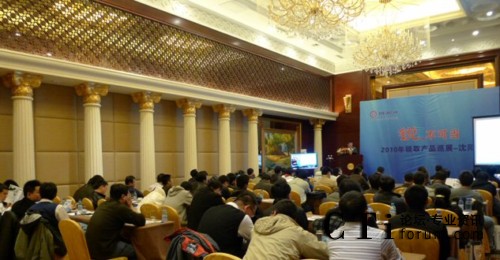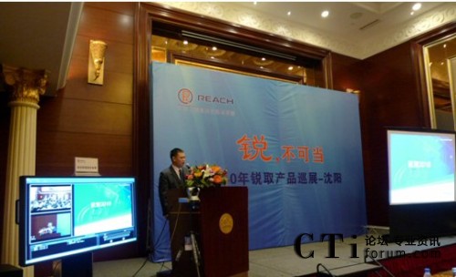 CTI論壇(ctiforum)4月28日消息(記者 潘婷婷)隨著零星小雨來,沈陽的春天也悄悄地的走來,銳取產(chǎn)品巡展第一站在沈陽五星級酒店皇朝萬鑫拉開了帷幕!圖:張總致歡迎詞