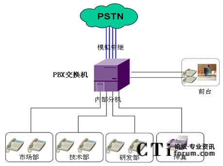 傳統(tǒng)的PBX交換機(jī),簡(jiǎn)單說(shuō)就是現(xiàn)在企業(yè)使用的集團(tuán)電話系統(tǒng),現(xiàn)在已經(jīng)被廣泛地運(yùn)用在各類企業(yè)中,大部分中小企業(yè)的電話現(xiàn)狀基本是從運(yùn)營(yíng)商申請(qǐng)幾根模擬中繼線路,在企業(yè)內(nèi)部部署臺(tái)小PBX交換機(jī),就解決企業(yè)的語(yǔ)音通訊問(wèn)題。CTI論壇編輯