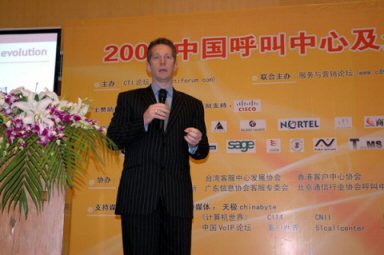 2007年4月18日至20日,2007中國呼叫中心及企業(yè)通信大會在上海光大會展中心國際大酒店隆重召開,以下是主題演講實錄: 主持人(李京成):謝謝張琳女士的精彩發(fā)言。她的演講讓我們開拓了眼界。時間有限,下面請出另外一位重量級的演講者就是亞太區(qū)最佳呼叫中心評委主席葛賽文先生,他演講的題目是“呼叫中心的平衡演進與能力退出”,那么協(xié)助他演講也是我們大家的老朋友,豐祖軍先生,他超凡的語言魅力在座的很多朋友都感受過,有請兩位先生。