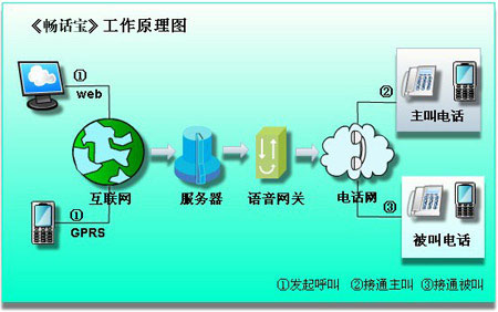 具體來講就是在手機(jī)里安裝“暢話寶”應(yīng)用軟件(在計(jì)算機(jī)桌面提供web客戶端),該軟件帶有通信錄和觸發(fā)GPRS的功能,可以通過無線互聯(lián)網(wǎng)將電話號碼發(fā)送到平臺,通過PSTN發(fā)起通話(2方或多方)。這個手機(jī)客戶端軟件,可無縫對接到固網(wǎng)增值業(yè)務(wù)平臺上(多方通信平臺)。客戶端軟件自身攜帶有通信錄功能,調(diào)用方便。部分機(jī)型可調(diào)用手機(jī)本身的通信錄。