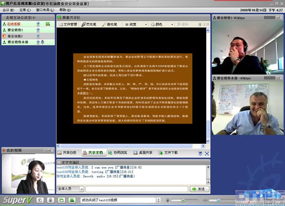 CTI論壇(ctiforum)05月19日消息: 自08年攜手視維Super-V視頻會議以來,中石油雅安分公司銷售部的日常工作會議高效及時地開展,尤其是在5.12四川大地震后,工作不但沒有中斷,而且足不出戶就可以給上級領導匯報工作,與同事交流營銷心得。而在以前,只能通過電話或者郵件,甚至長途跋涉聚集到一個地方舉行會議,既浪費時間又增加營銷成本。這是繼中國重汽、新加坡協(xié)美集團等跨國集團公司倡導信息時代新營銷主義,實現(xiàn)高效運營的又一典型案例應用。CTI論壇報道