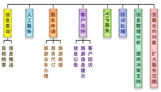 對(duì)于旅游企業(yè)提供的各種功能服務(wù)(包括旅游業(yè)務(wù)、預(yù)訂業(yè)務(wù)等),都可以通過(guò)旅游機(jī)構(gòu)的呼叫中心系統(tǒng)進(jìn)行申請(qǐng),摒棄繁瑣的申請(qǐng)過(guò)程,使用戶在第一時(shí)間得到優(yōu)質(zhì)的服務(wù)。
