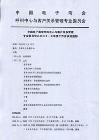 中國(guó)電子商會(huì)呼叫中心與客戶關(guān)系管理專業(yè)委員會(huì)會(huì)員/理事單位申請(qǐng) 2010-01-06 |