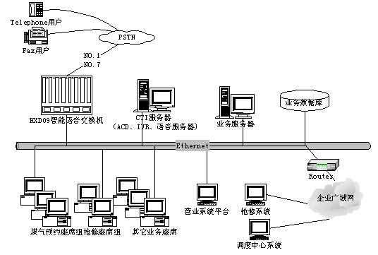 如何為客戶提供"一個(gè)電話對外"和"一站式"的服務(wù)便成了最急待解決的課題。隨著近年來CTI技術(shù)的蓬勃發(fā)展,特別是新一代智能語音交換機(jī)的推出,使這一問題迎刃而解。我們能夠方便地建設(shè)一套技術(shù)先進(jìn)、穩(wěn)定高效、價(jià)格合理、適合于燃?xì)庑袠I(yè)的呼叫中心。