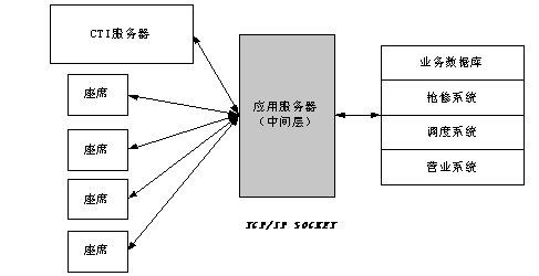 - 數(shù)據(jù)接口采用三層C/S結(jié)構(gòu),通過構(gòu)建功能強(qiáng)大的應(yīng)用服務(wù)器,把呼叫中心的數(shù)據(jù)流與燃?xì)夤究蛻粝到y(tǒng)、營業(yè)系統(tǒng)、搶修系統(tǒng)和燃?xì)庹{(diào)度系統(tǒng)結(jié)合起來,充分利用了已有系統(tǒng)標(biāo)準(zhǔn)的數(shù)據(jù)接口,實(shí)現(xiàn)對后臺數(shù)據(jù)庫的訪問。如圖2