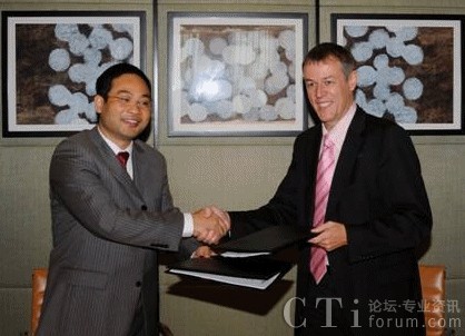圖:華為無線產(chǎn)品線副總裁鄭葉來(左),與AIRCOM International首席技術(shù)官 Ricky Watts簽署技術(shù)合作協(xié)議。