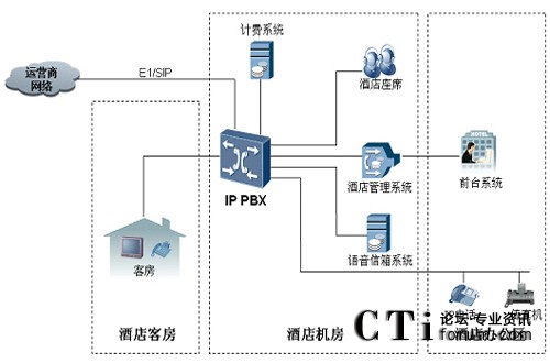 提供入住和退房服務(wù),提供PMSI接口,提供語音郵箱業(yè)務(wù)、呼叫權(quán)限等應(yīng)用。
