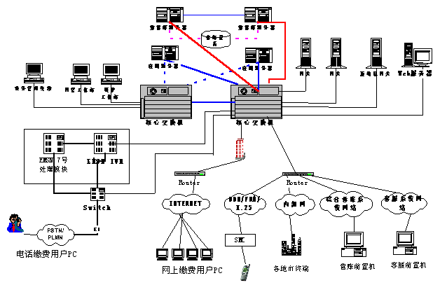根據(jù)公司業(yè)務(wù)系統(tǒng)的組網(wǎng)方式,提供合適的解決方案,滿足需求,采用全省集中方式,具有以下特點(diǎn):省中心建設(shè)語音處理系統(tǒng)和付費(fèi)平臺業(yè)務(wù)系統(tǒng)集中在省中心;完全集中管理;完全支持全省漫游繳費(fèi);全省設(shè)備投資較少。