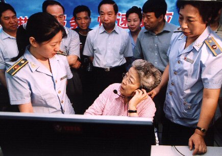 中共中央政治局委員、國(guó)務(wù)院副總理吳儀在北京市代市長(zhǎng)王岐山、國(guó)務(wù)院副秘書(shū)長(zhǎng)徐紹史、國(guó)家工商總局局長(zhǎng)王眾孚等人陪同下,視察了北京市工商局12315調(diào)度指揮中心。吳儀同志強(qiáng)調(diào),北京建立政府信用平臺(tái),延伸了市場(chǎng)監(jiān)管的觸角和視野,體現(xiàn)了監(jiān)管現(xiàn)代化大市場(chǎng)的特色。監(jiān)管現(xiàn)代化的市場(chǎng),必須運(yùn)用現(xiàn)代化的科技手段。北京12315投訴舉報(bào)指揮中心服務(wù)座席