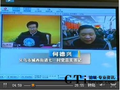 CTI論壇(ctiforum)2月25日消息(記者 潘婷):新春佳節(jié),浙江省委書記趙洪祝通過中國電信遠(yuǎn)程教育網(wǎng)絡(luò)視頻與部分村支部書記、村官代表進行了遠(yuǎn)程互動,探討農(nóng)村管理的同時向基層村干部拜年、慰問。CTI論壇報道