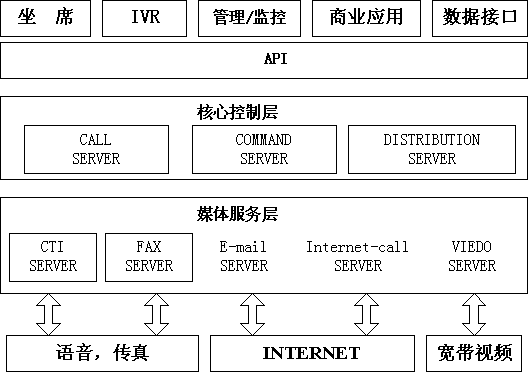 核心控制層由Call Server(呼叫控制) 、Command Server(命令服務(wù))、Distribution Server(路由服務(wù))