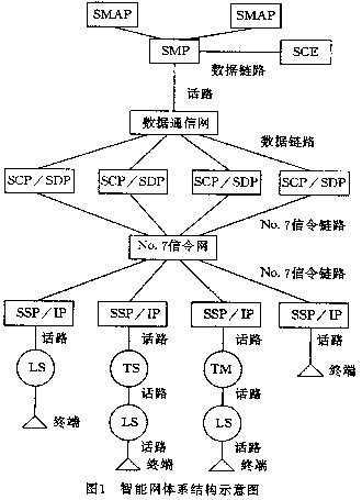 -- 智能網(wǎng)是通過(guò)業(yè)務(wù)交換點(diǎn)(SSP)、業(yè)務(wù)控制點(diǎn)(SCP)、數(shù)據(jù)庫(kù)(SDP)、智能外設(shè)(IP)以及業(yè)務(wù)管理點(diǎn)(SMP)、業(yè)務(wù)生成環(huán)境(SCE)等來(lái)生成和實(shí)現(xiàn)新業(yè)務(wù)的。它可以為所有的通信網(wǎng)絡(luò)服務(wù),無(wú)論是PSTN、PSPDN、PLMN、N-ISDN。圖1所示是PSTN、PLMN、N-ISDN還是B-ISDN。圖1所示為我國(guó)目前智能網(wǎng)的結(jié)構(gòu),其中的SMAP是業(yè)務(wù)管理接入點(diǎn)。LS是市話交換,TS是長(zhǎng)途交換級(jí),TM為匯接局。