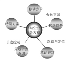 KTF不僅為普通消費者提供了許多非常吸引人的應用, 同時也為企業(yè)設(shè)計了相關(guān)方案。如:移動辦公是B2E市場中的重要應用,是隨著無線技術(shù)的發(fā)展而興起的一種應用,主要是針對公司或集團用戶外出時仍然能通過運營商的無線網(wǎng)絡接入公司內(nèi)部網(wǎng)絡進行工作,而不受時間,地域的限制。運營商可以針對集團用戶采用特殊費率或提供類似于集團內(nèi)部的縮位撥號等功能。目前在CDMA網(wǎng)上可用VPN,將來配合CDMA