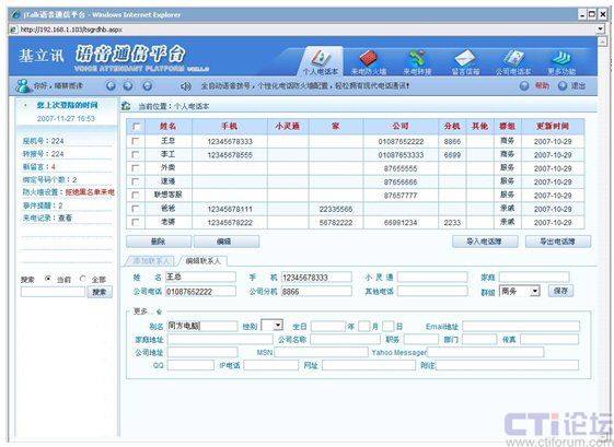 電話本結構設計合理、維護容易,和電話呼叫完美結合。一個電話本本地、異地均可使用、移植,管理和使用非常方便。