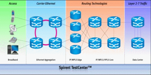 隨著語音、數(shù)據(jù)、視頻的融合,以及Everything over IP的發(fā)展,日趨復(fù)雜的業(yè)務(wù)流量及電信級(jí)別的營運(yùn)要求給承載設(shè)備帶來更加嚴(yán)格的挑戰(zhàn)。豐富的功能應(yīng)用、高密度/高帶寬端口的支持、高性能轉(zhuǎn)發(fā)要求、全面的寬帶接入系統(tǒng)、靈活的業(yè)務(wù)應(yīng)用及流量管理、完備的安全防護(hù)、周全的穩(wěn)定運(yùn)營及容錯(cuò)備份系統(tǒng)、良好的可擴(kuò)展性等,設(shè)備廠商交付使用的不僅僅是單一的設(shè)備,而是一攬子從承載到應(yīng)用的綜合系統(tǒng)。部署實(shí)施前的測(cè)試也變得相當(dāng)重要,能否有一種完整的測(cè)試解決方案,以幫助設(shè)備制造廠商完全應(yīng)用目前的所有功能測(cè)試呢?