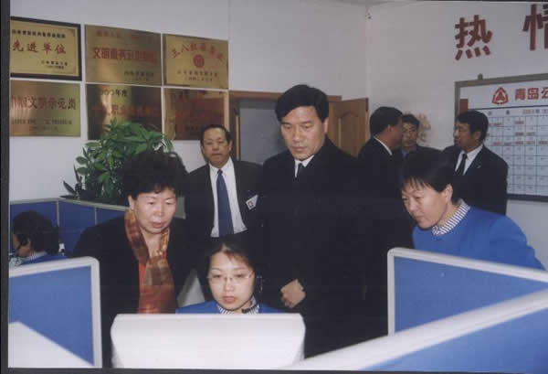 二〇〇三年八月二十日 中共中央政治局委員、書記處書記、中宣部部長劉云山、副部長胡振民在山東省委書記張高麗、省委常委、青島市委書記杜世成等領(lǐng)導(dǎo)陪同下視察96111熱線。
