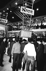 韓國(guó)移動(dòng)通信運(yùn)營(yíng)商SK電訊的展臺(tái)是整個(gè)展會(huì)上最熱鬧的地方之一,能歌善舞的韓國(guó)藝人吸引了很多觀眾駐足。在“為人類(lèi)的移動(dòng)互聯(lián)通信, SK電訊與您攜手”的主題下,SK電訊展示了移動(dòng)增值及移動(dòng)互聯(lián)服務(wù)。賽迪網(wǎng) 中國(guó)信息化(industry.ccidnet.com)