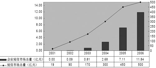 圖 企業(yè)短信及短信市場(chǎng)總體增長(zhǎng)情況