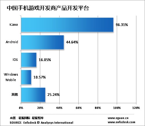 根據(jù)易觀國際的數(shù)據(jù)顯示,截至2010年底,中國手機(jī)游戲用戶規(guī)模突破1.3億,同比增長52.11%,同期中國手機(jī)游戲市場規(guī)模達(dá)33億,伴隨著整體市場的發(fā)展手機(jī)游戲開發(fā)商隊(duì)伍也逐漸完善;為了更好的研究手機(jī)游戲市場,近期易觀國際對手機(jī)游戲開發(fā)商進(jìn)行調(diào)研,推出《中國手機(jī)游戲開發(fā)商研究報告2010》,以期對手機(jī)游戲市場提供有價值的信息,通過調(diào)研發(fā)現(xiàn)KJava依舊是中國手機(jī)游戲開發(fā)商的主要開發(fā)平臺。