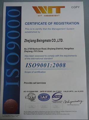 浙江貝因美科工貿(mào)股份有限公司呼叫中心于2012年1月17日通過ISO9001:2008質(zhì)量管理體系認(rèn)證,并獲得中國CNAS和美國ANAB認(rèn)可的證書。這標(biāo)志著,貝因美呼叫中心成為國內(nèi)嬰童業(yè)界少數(shù)通過ISO9001國際質(zhì)量管理體系的審核、并獲得ISO9001:2008質(zhì)量管理體系認(rèn)證證書的客戶服務(wù)中心之一。