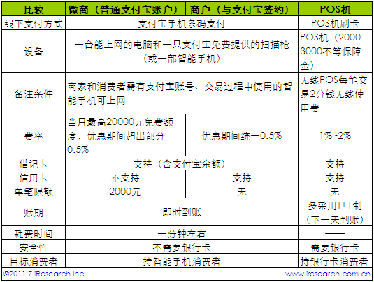 2011年7月1日上午,支付寶在2011廣州網(wǎng)貨會上推出手機支付產(chǎn)品——條碼支付(Barcode Pay)。在支付過程中使用這種產(chǎn)品,消費者與商家之間只有掃描條碼的接觸,不需要出示任何銀行卡。該支付方式主要針對現(xiàn)實中的微小商戶(如小賣店、便利店),為其提供低成本收款服務(wù)。