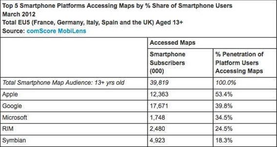 ComScore調(diào)查:35%歐洲智能手機(jī)用戶使用地圖服務(wù)