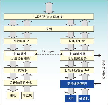 圖2:在處理器/協(xié)處理器架構(gòu)中實現(xiàn)的IP音視頻數(shù)據(jù)流